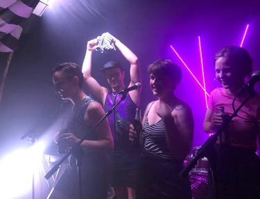 Die Angeilikas sind der neueste Schrei aus dem Schwarzwald. Irgendwas mit Schlager, Punk und Mundartperformance. Auf jeden Fall ziemlich wild. Mit Multitalent Yvonne an Keyboard, Schlagzeug und Gitarre, Moni an Keyboard und Gesang, Ernst an Schlagzeug, Gitarre und Gesang und Gabi, der Hip Hop Influence, an Bass, Keyboard und Gesang.